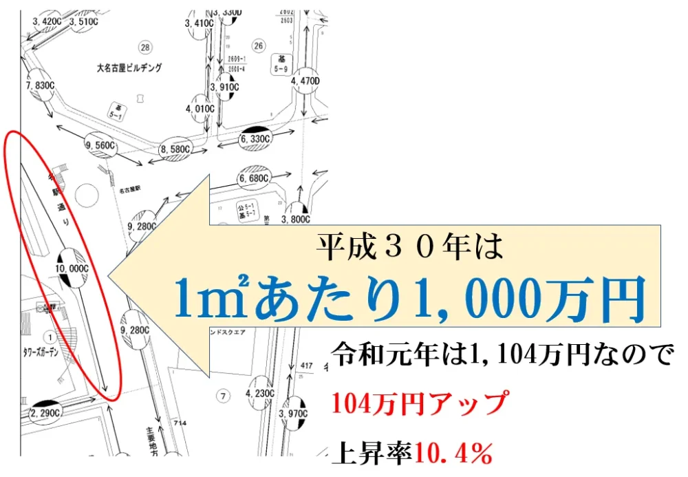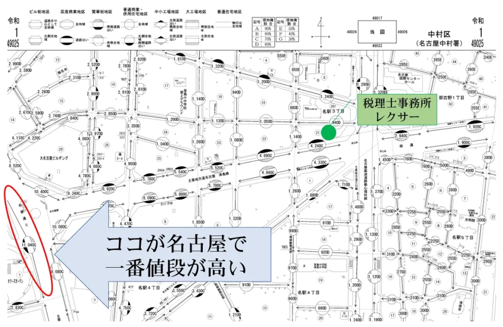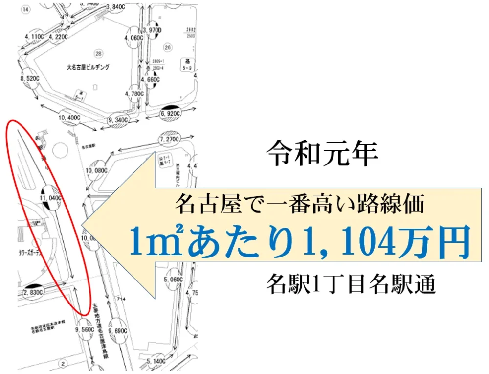 公示地価の8割程度といっても名古屋駅付近の路線価はとんでもない金額ですよね!