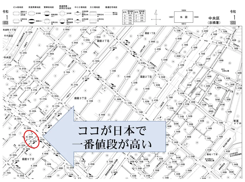 ちなみに日本で一番高い路線価を記録したのは今年も銀座5丁目中央通りです。