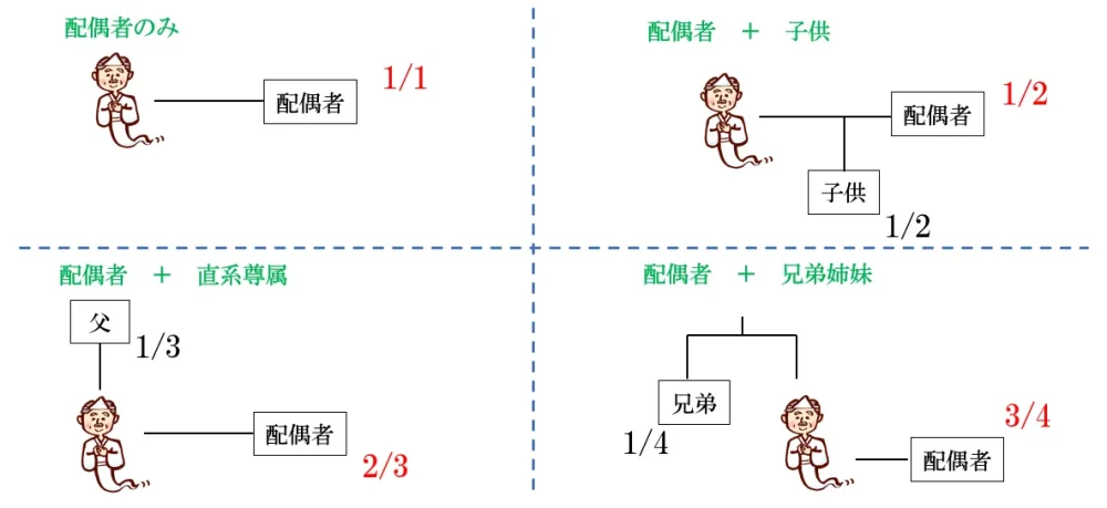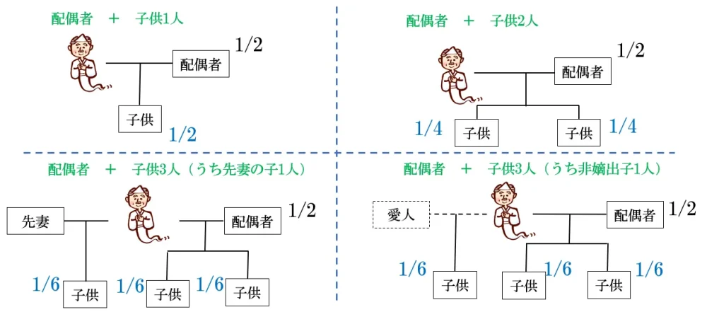 法定相続分は配偶者がいるか否かなど、ケースによって異なります。