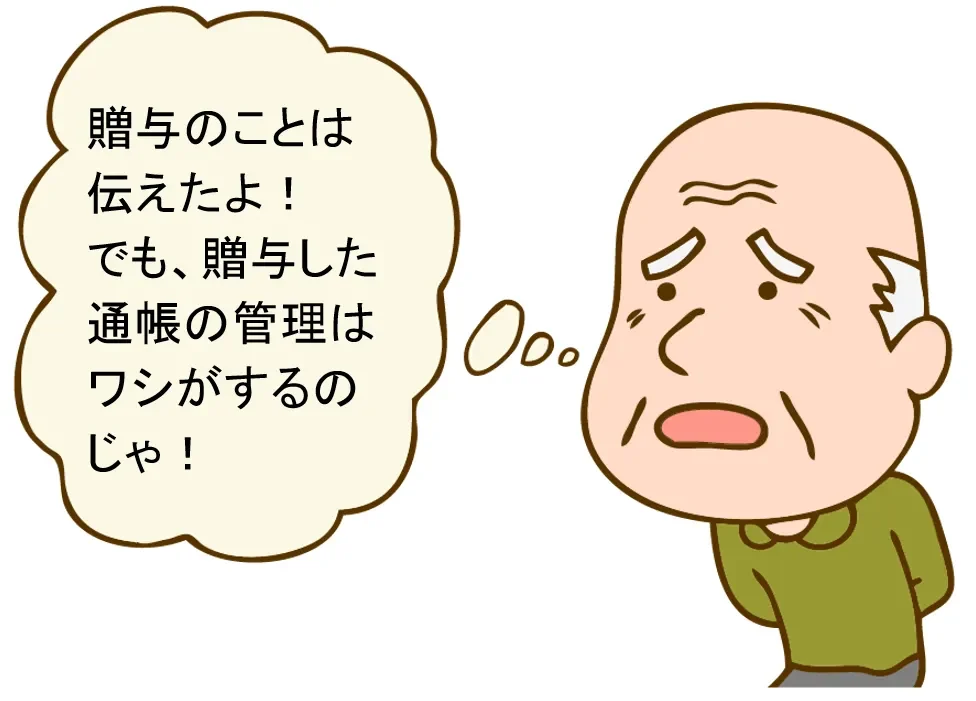 それは、通帳の管理者が贈与者のままだからです。