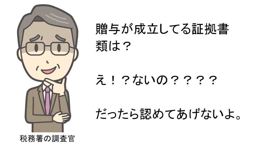 逆に税務調査でつつかれている方もいらっしゃいます。本来は贈与申告以外の方法で贈与の証拠を残す必要があります。