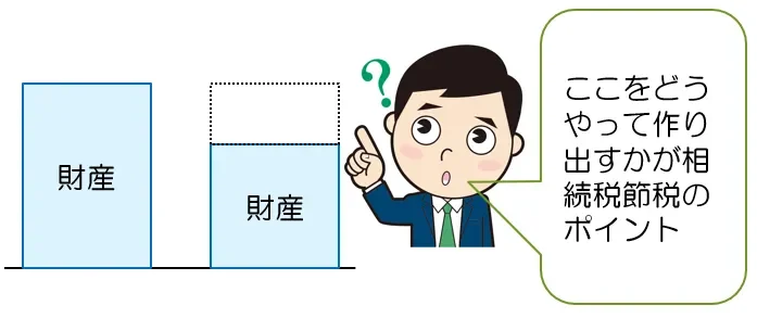 つまり、図解の点線で囲われた部分を上手に作り出してやることが相続税節税のポイントといえます。