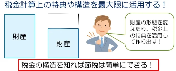 節税は税金を安くするための手法なので、やはり税金の知識をもたずして節税はできません。税金のすべてを把握することは難しいと思いますが、税金の制度や構造を知って、税金上の特典や構造を最大限に活用することで、財産の圧縮ができ、節税が可能になるのです。