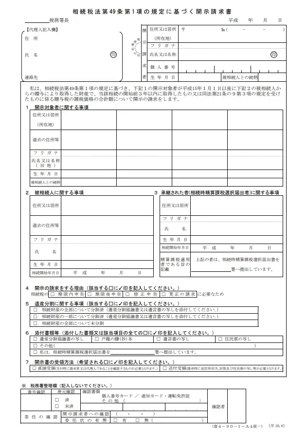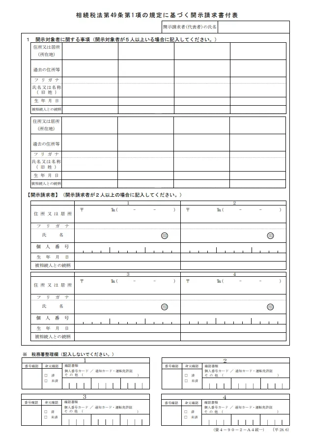正式には「相続税法49条第1項の規定に基づく開示請求書」といいます。