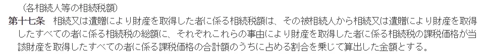 (※)冒頭の法第17条は相続税法第17条(各相続人等の相続税額)を指します。