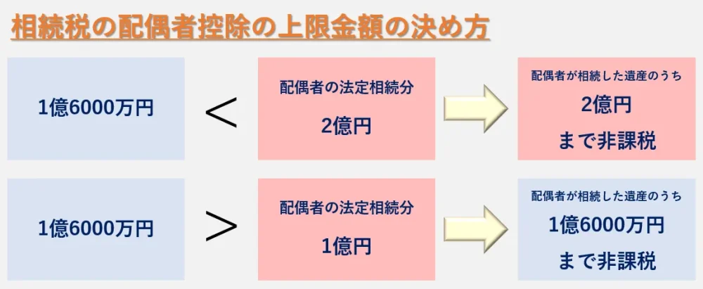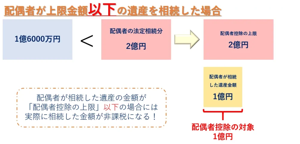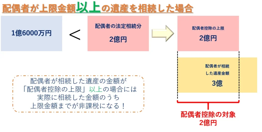 逆に、配偶者が相続した遺産が上限金額よりも多い場合には、配偶者が相続した遺産のうち上限金額までの金額が非課税になります。