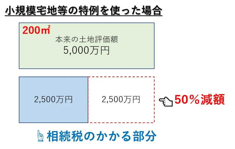 貸付事業用で小規模宅地等の特例を使うことができれば、土地の評価額が最大で50%減額されるため、その節税効果は絶大です。