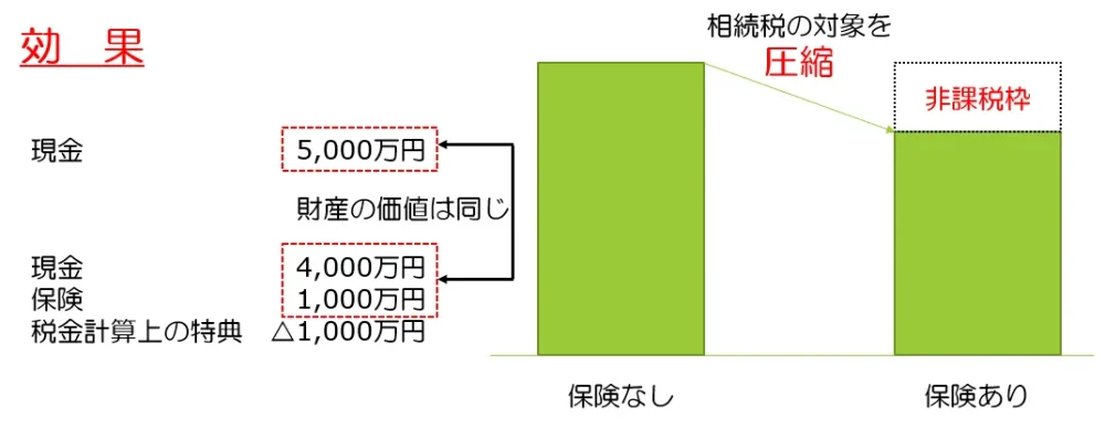 そのため一時払い終身保険の場合には、現金や預貯金を保険に変えるだけ、つまり財産の価値は同じままで相続税の節税が可能となるのです。