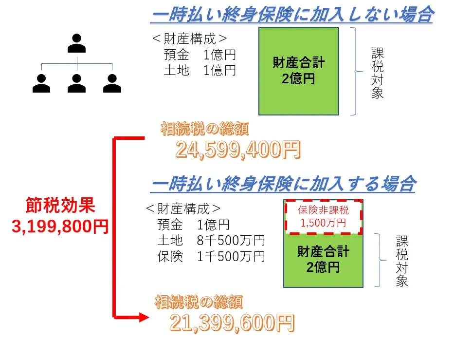 では、一時払い終身保険を活用するとどのくらいの相続税が節税できるのでしょうか?