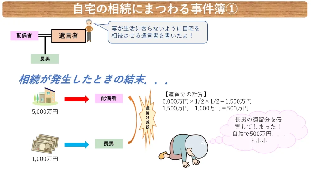 被相続人は生前に「自宅は配偶者に相続させ、現金は息子に相続させる」という遺言書を書いていました。