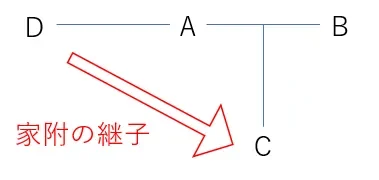家附の継子とは、女性Aの家に男性Bが入婿婚姻して子供Cが生まれます。その後入婿Bの死亡または入婿Bとの離婚によって婚姻が解消した後に、男性Dと入婿婚姻した場合のDからみたCのことです。