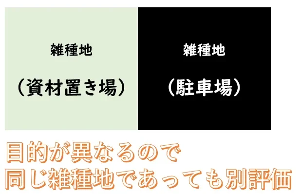 つまり、利用目的が異なるため同じ雑種地であっても別々の評価単位として評価するべきということになります。