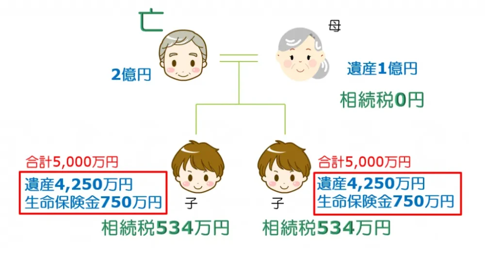 では次に、子供が750万円ずつ保険金を受け取るとしましょう。