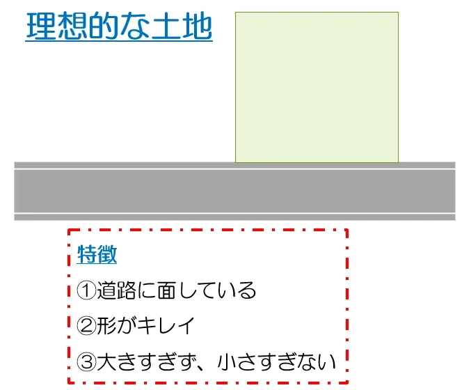 地域によって価値観の違いが若干ありますが、相続税を計算する上での理想的な土地は次の三つの条件を満たす土地です。