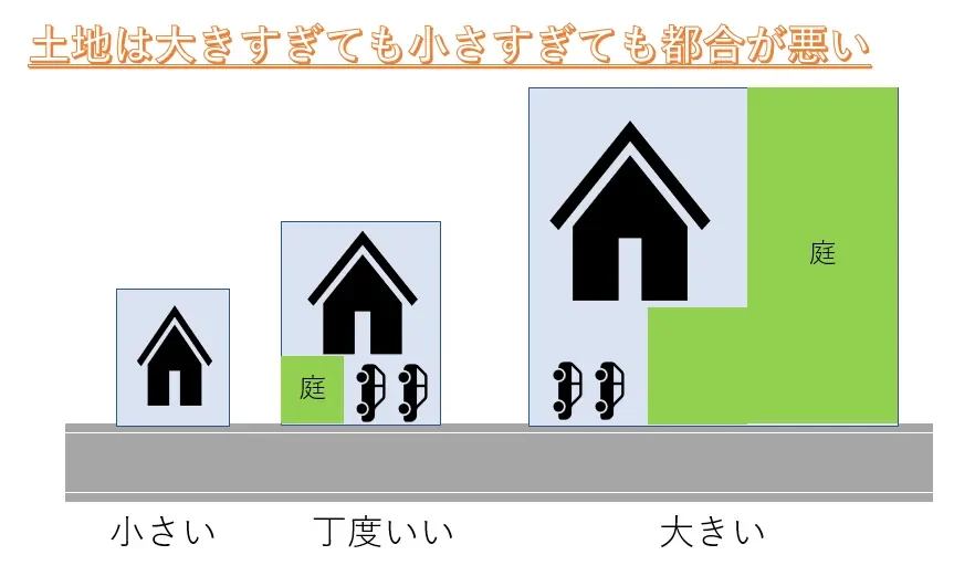 「私は大きなお庭つきの土地がいいわ♪」という方は一般的には少数派で、大多数は経済的にも丁度いい土地が欲しいはずです。