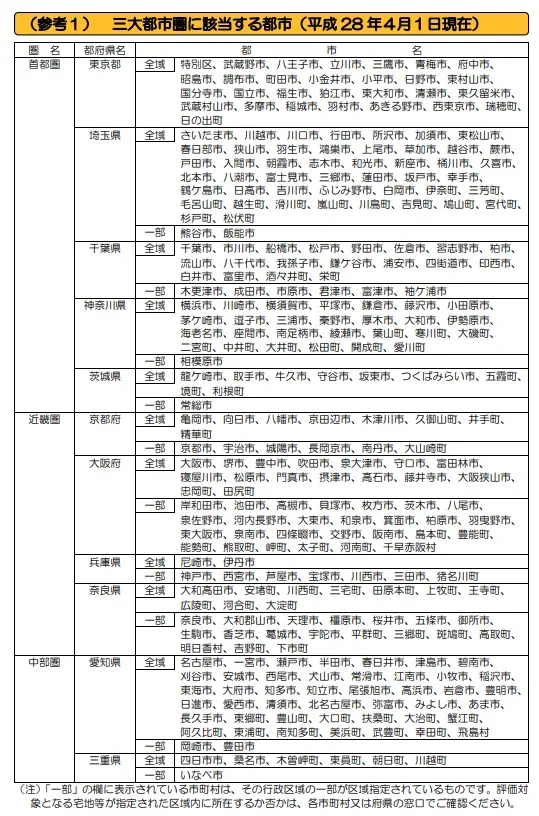 地積規模の大きな宅地評価を適用する際の三大都市圏とは、以下の地域を指します。